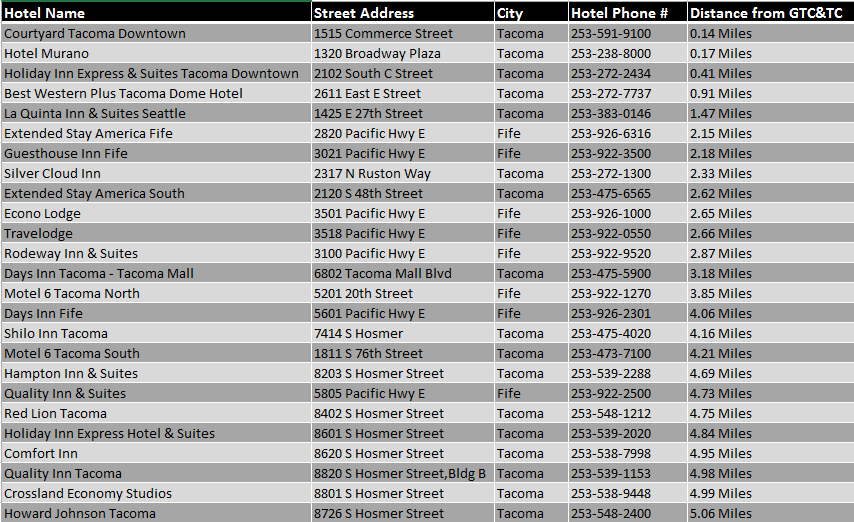 The GTCTC has over 400 parking spacees that can be accessed at Market & 17th Street. Parking lots are operated by Republic Parking and managed by the City of Tacoma. Accessible parking, including van accessible parking, is available in Parking Lot A Garage on a first come, first serve basis.
